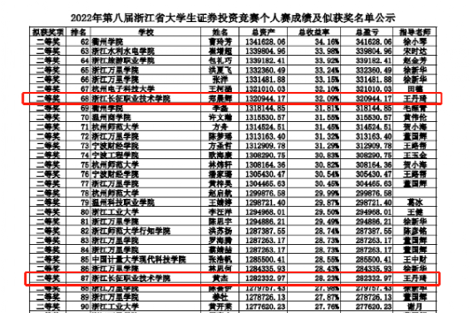 浙江省第八届大学生证券投资竞赛于近日落下帷幕。本次大赛由浙江省大学生科技竞赛委员会主办,浙江证券业协会指导,浙江财经大学承办,浙大城市学院、浙商证券股份有限公司、浙江核新同花顺网络信息股份有限公司协办。该项赛事是省级A类学科竞赛,大赛还原真实的证券市场竞争模式,旨在提升大学生金融投资分析水平,培养创新精神和风险意识,在实战中有效促进校际金融学科交流。